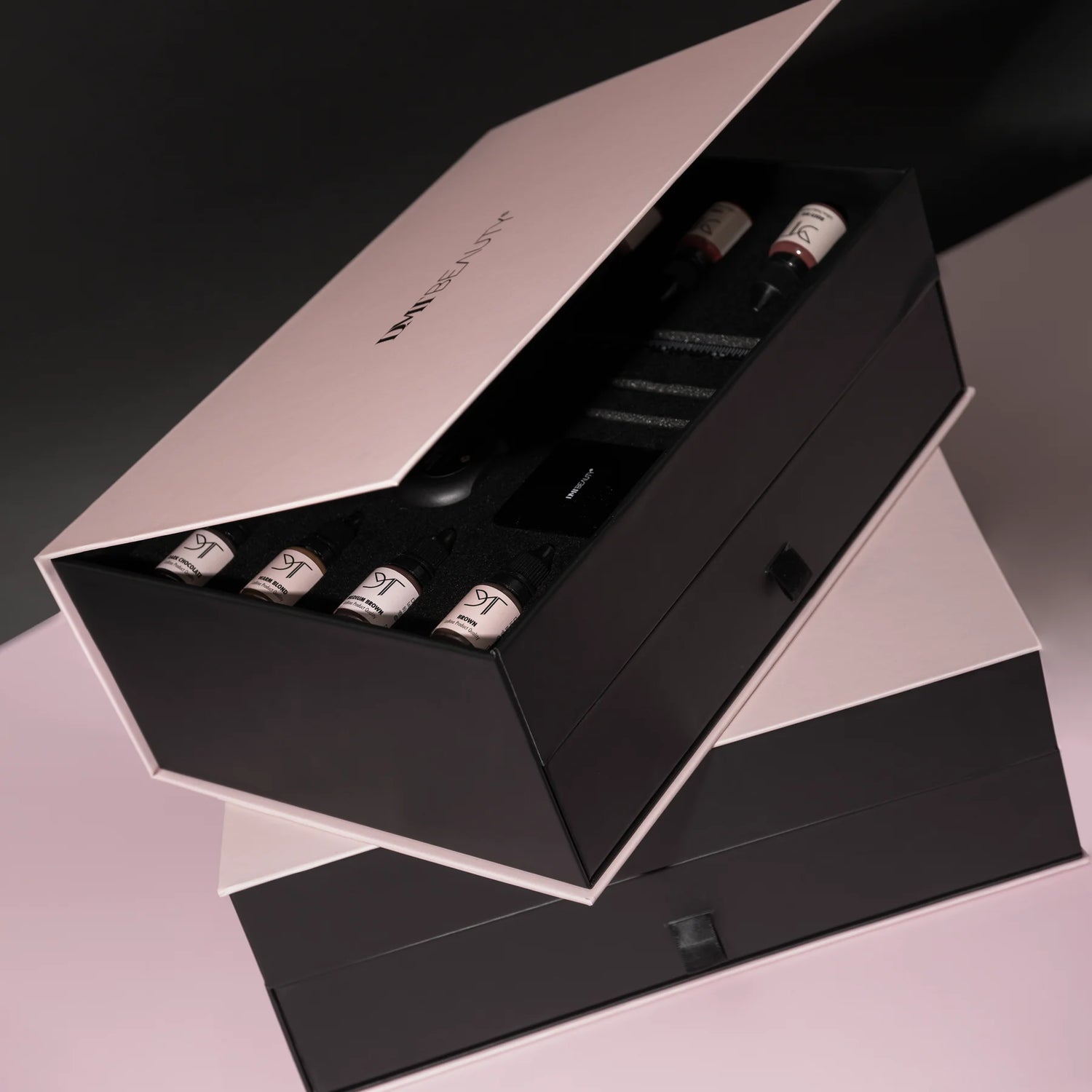 Bij een basis training training ontvang je als cursist een volledige starterskit van Dmtbeauty, waarmee je je PMU carrière als specialiste kan starten!