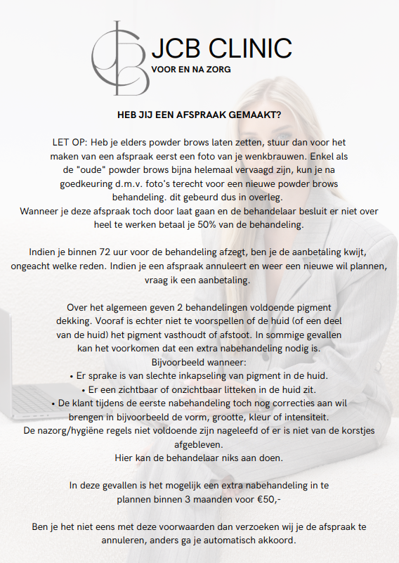 Bij JCB Clinic Academy wil ik je helpen om te groeien als PMU-artiest, of je nu net begint of al ervaring hebt. Ik neem je stap voor stap mee en leer je niet alleen de techniek, maar ook hoe je vol vertrouwen en met precisie werkt. Mijn doel is dat jij je zeker voelt in wat je doet en dat je het leuk vind, prachtige resultaten behaalt en je klanten laat stralen.