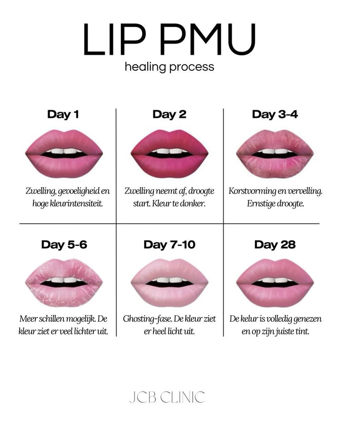 De procedure begint met een consult, waarin de specialist de gewenste kleur en vorm van je lippen bespreekt. Daarna wordt er een dunne laag verdovende crème aangebracht om het ongemak te minimaliseren. Het pigment wordt vervolgens in de lippen gebracht met een speciaal apparaat, laag voor laag, om een subtiele, egale kleur te creëren.