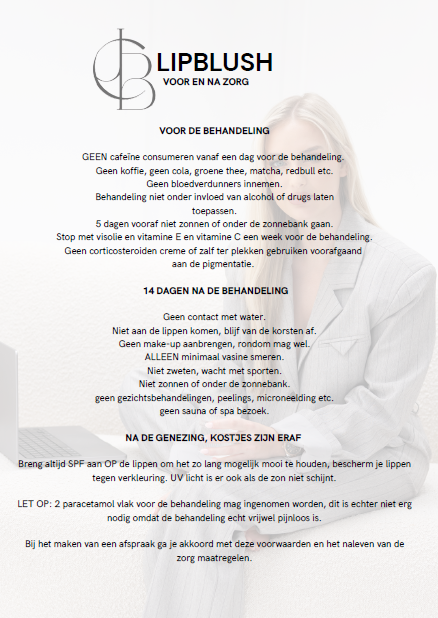 Lipblush is een semi-permanente make-uptechniek waarbij pigment subtiel in de lippen wordt ingebracht om een meer definitie, kleur en vorm te geven. In tegenstelling tot lip tattoos die vaak een harde lijn creëren, zorgt lipblush voor een zachte, subtiele tint die de natuurlijke lippen kleur geeft en tegelijkertijd de lipvorm benadrukt. De techniek kan zowel voor het verbeteren van de lipcontour als voor het creëren van een algehele "rosige" look worden gebruikt.
